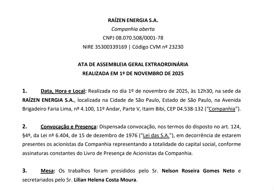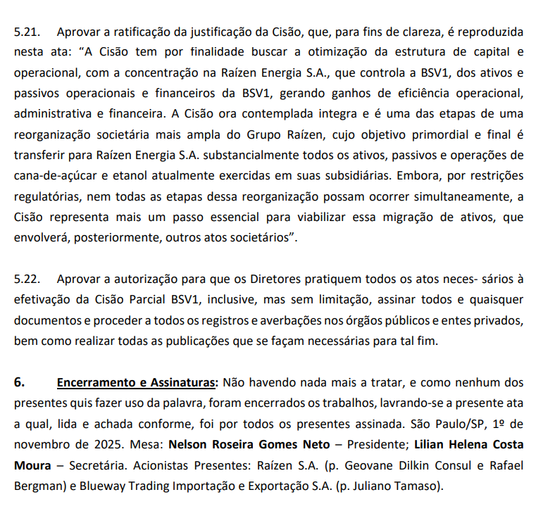 Em Assembleia Geral Extraordinária realizada no sábado, 1º de novembro, a Raízen Energia aprovou uma ampla reorganização societária que integra o processo de simplificação e consolidação das suas operações no setor de bioenergia.