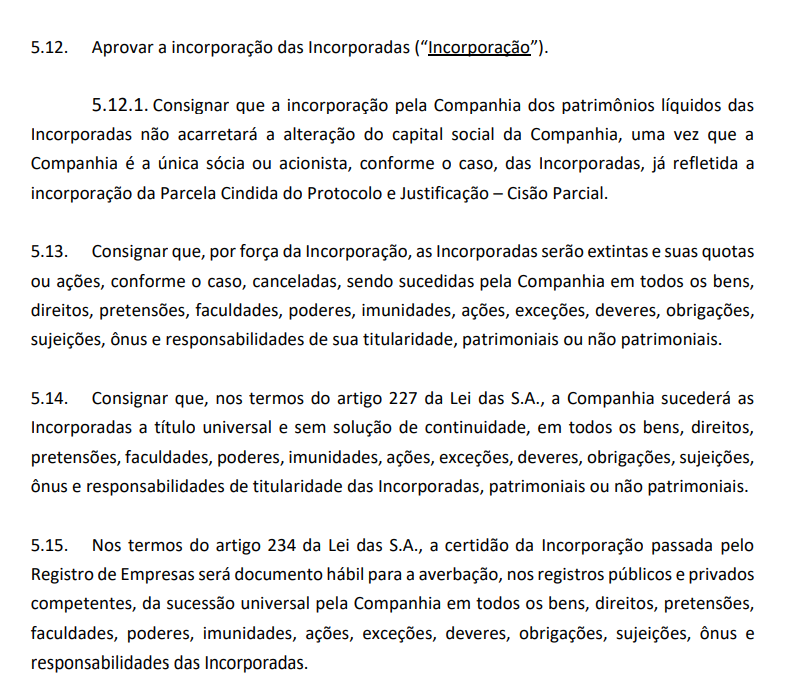 Entre as decisões deliberadas por unanimidade dos acionistas, estão a incorporação de subsidiárias e a cisão parcial de empresas do grupo, sem alteração no capital social.