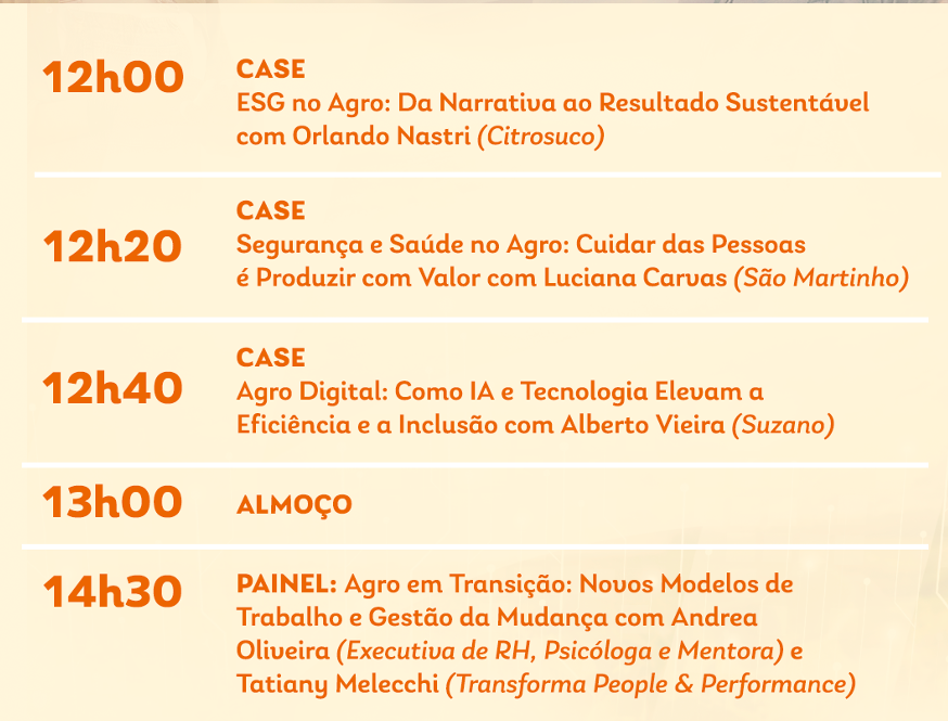 No Fórum Agro da ABRH-SP 2025, o tema central é “Transformação humana e inovação no agro: Construindo o futuro sustentável do setor”.