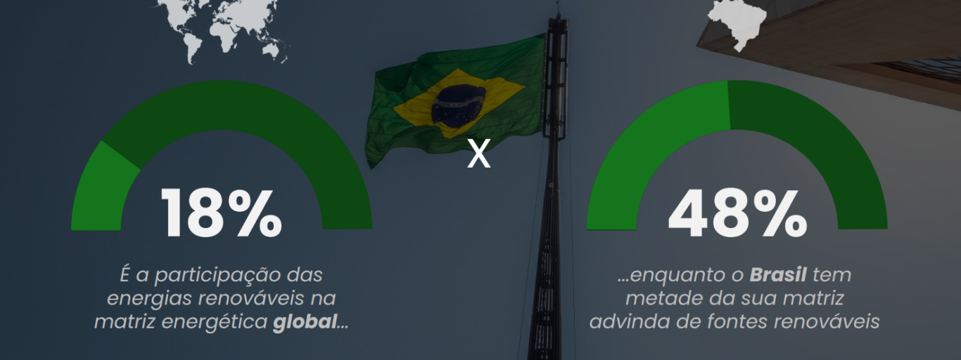O trabalho também destaca que 48% da metade da matriz energética brasileira vem de fontes renováveis, enquanto globalmente essa participação é de 18%.