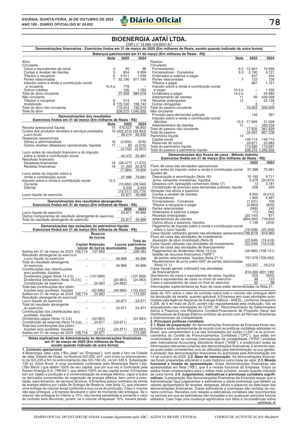 Imagens das demonstrações financeiras publicadas no Diário Oficial de Goiás: