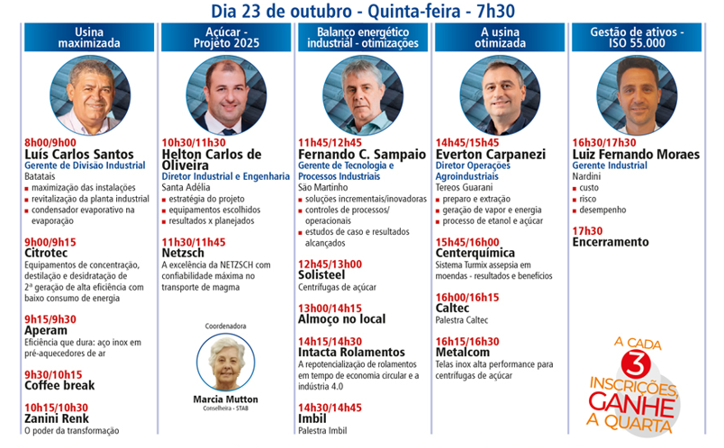 A STAB Regional Sul divulga a programação do 24º Seminário Brasileiro Agroindustrial a ser realizado nos dias 22 e 23 em Ribeirão Preto (SP).
