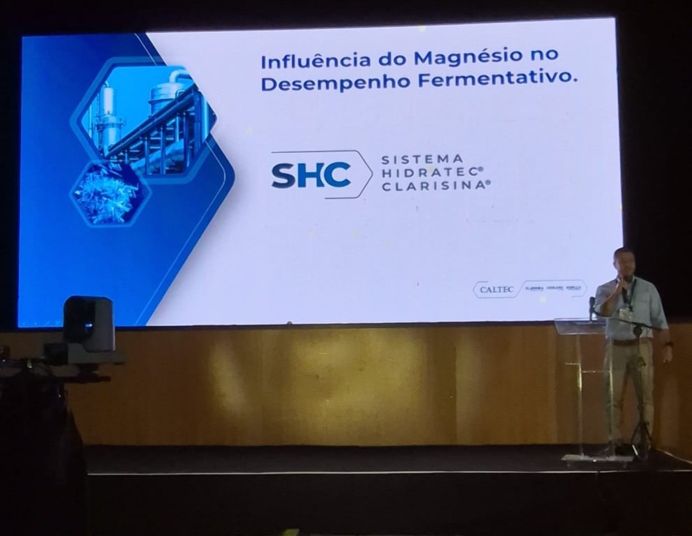 A Caltec marcou presença no 24º Seminário Brasileiro Agroindustrial (SBA) apresentando os resultados de um estudo conduzido em parceria com o laboratório Biosab que comprovam os benefícios do Sistema Hidratec Clarisina® (SHC), tecnologia que vem transformando o desempenho fermentativo nas usinas ao fornecer 9,5% mais magnésio disponível no mosto em comparação ao processo convencional com cal calcítica.