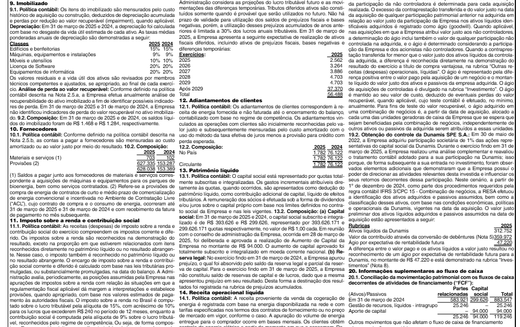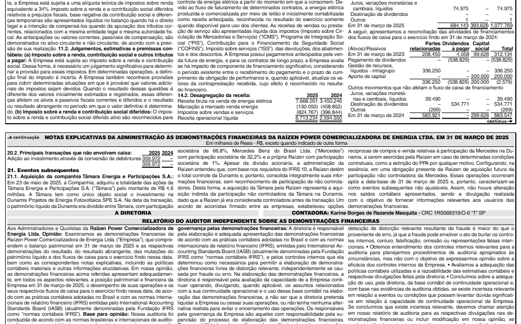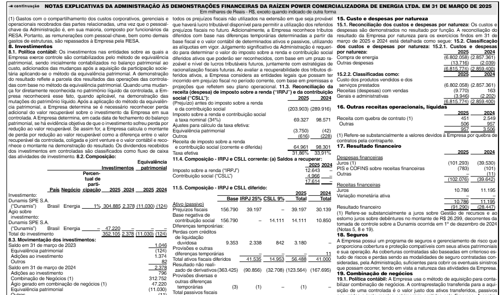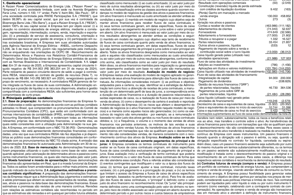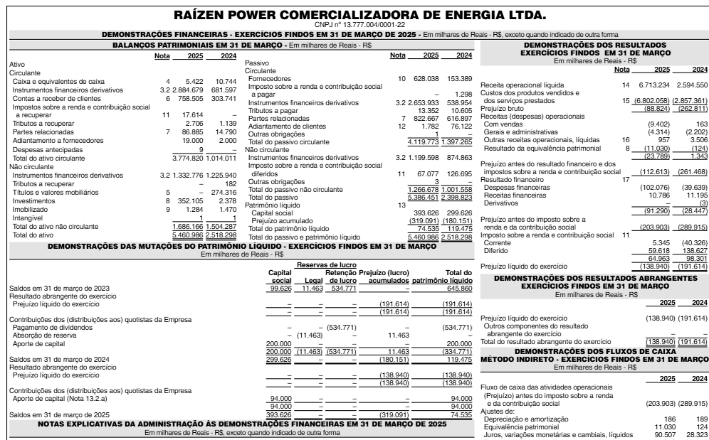 Veja a seguir imagens das demonstrações financeiras da Raízen Power: