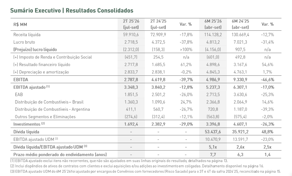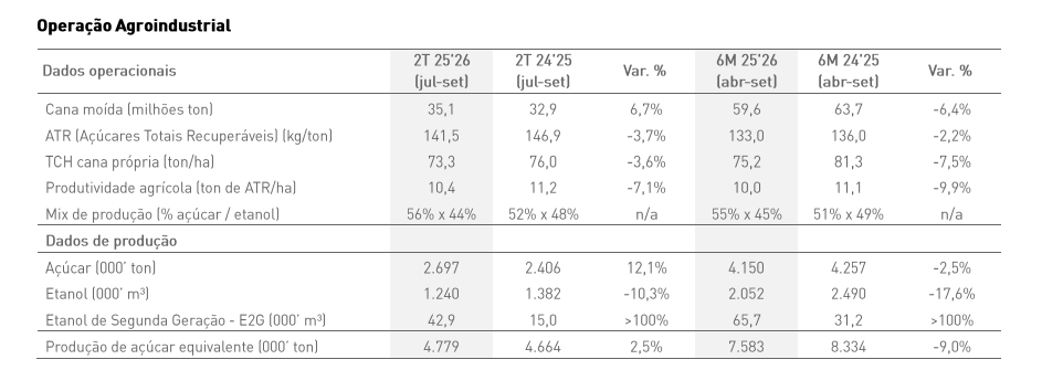 Por meio de divulgação nesta sexta-feira, dia 14 de novembro, a Raízen divulga os resultados do segundo trimestre (julho, agosto e setembro) da safra 2025/26.