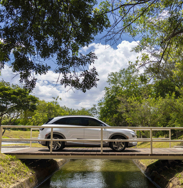 Em fevereiro deste ano, esta unidade do SUV Hyundai NEXO começou a operar em testes com o Centro de Pesquisa e Inovação em Gases de Efeito Estufa (RCGI), da Universidade de São Paulo (USP), onde está localizado o primeiro posto de abastecimento de hidrogênio renovável a partir de etanol do mundo.